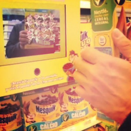 Nestro desario fue usar un recurso de tecnología e innovación en las góndolas de las cereales de nesquick que no tuviese que modifcar el packaging